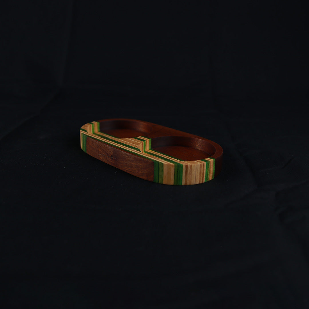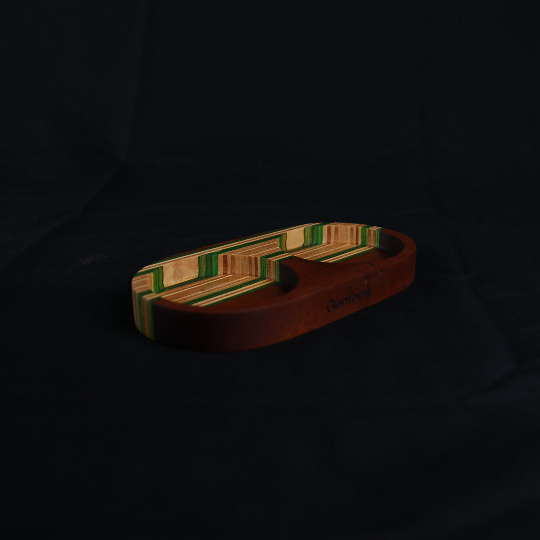 Hver holder er fremstillet i Danmark af genanvendte skateboard-decks, hvor de farverige finerlag skaber et unikt og levende udtryk. Materialet – canadisk ahorn – er både slidstærkt og smukt, og de tidligere skatere, der har brugt brættene, har allerede tilføjet en helt særlig historie til hvert enkelt produkt.
